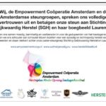 Wij, verschillende leden van de Empowerment Coöperatie Amsterdam (ECA) en andere Amsterdamse steungroepen, zetten ons …